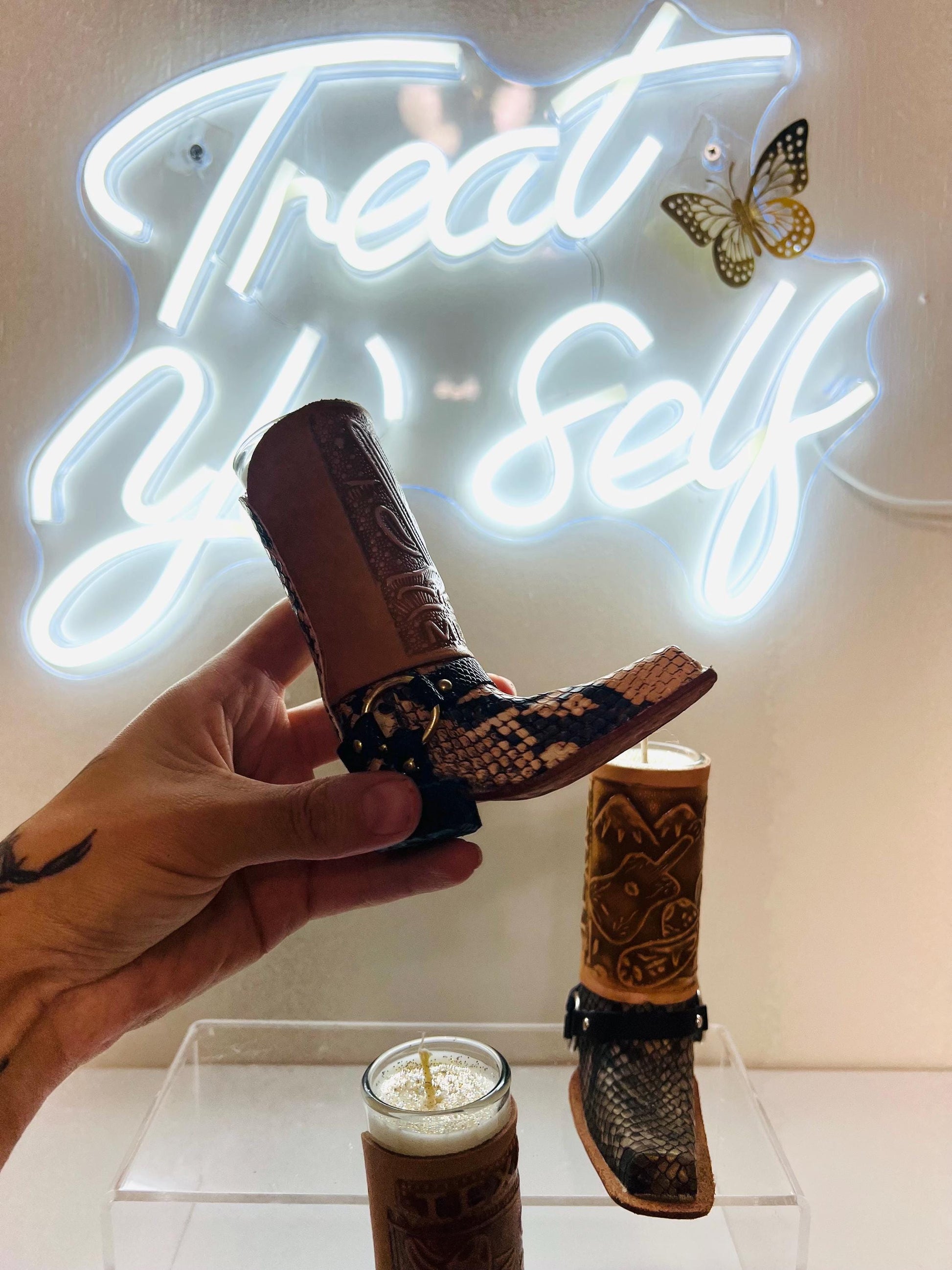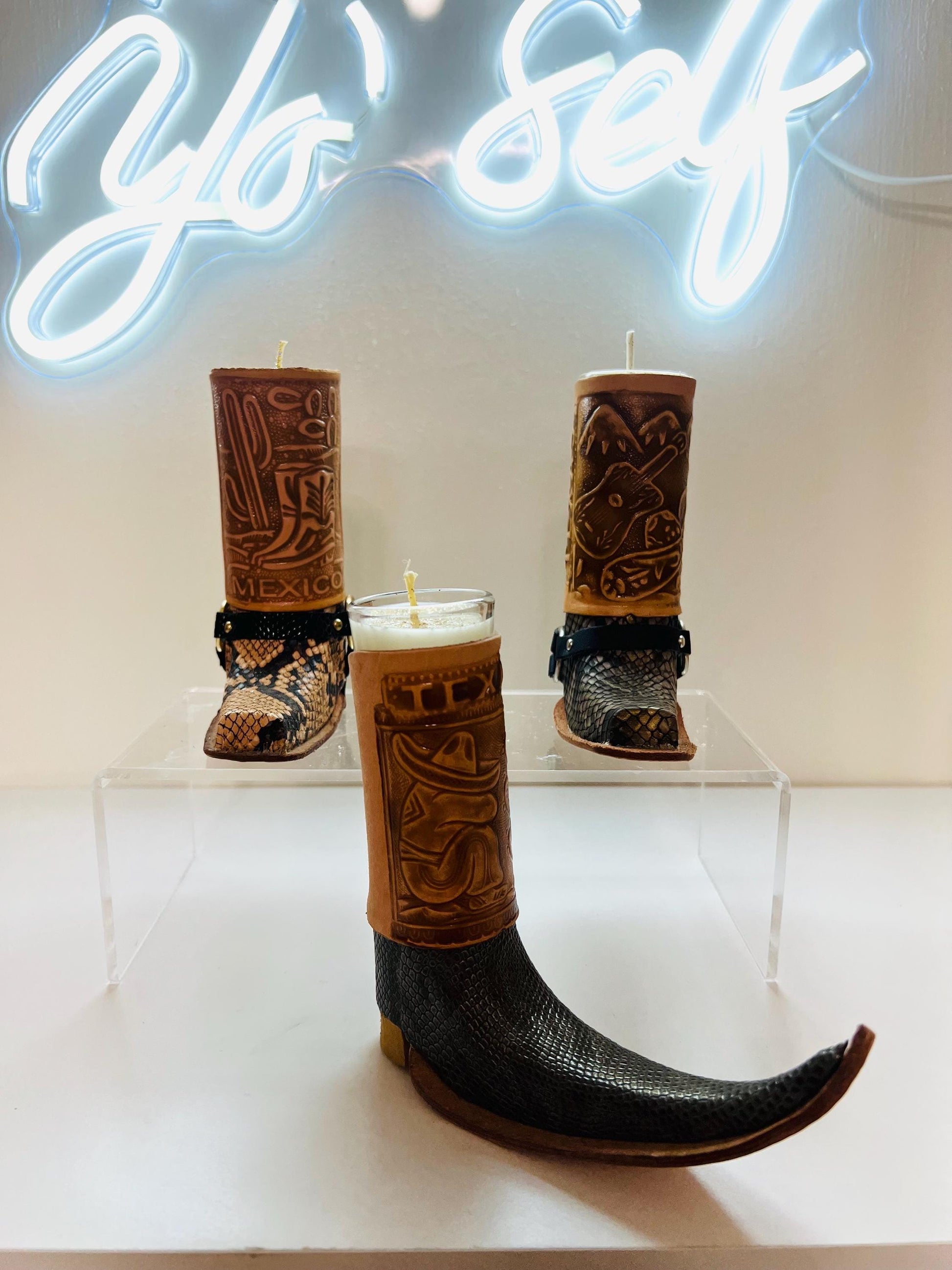 Introducing our Cowboy Boot Candles, a unique and stylish addition to your home decor. These candles are designed to look like a cowboy boot, adding a touch of Western flair to any room.