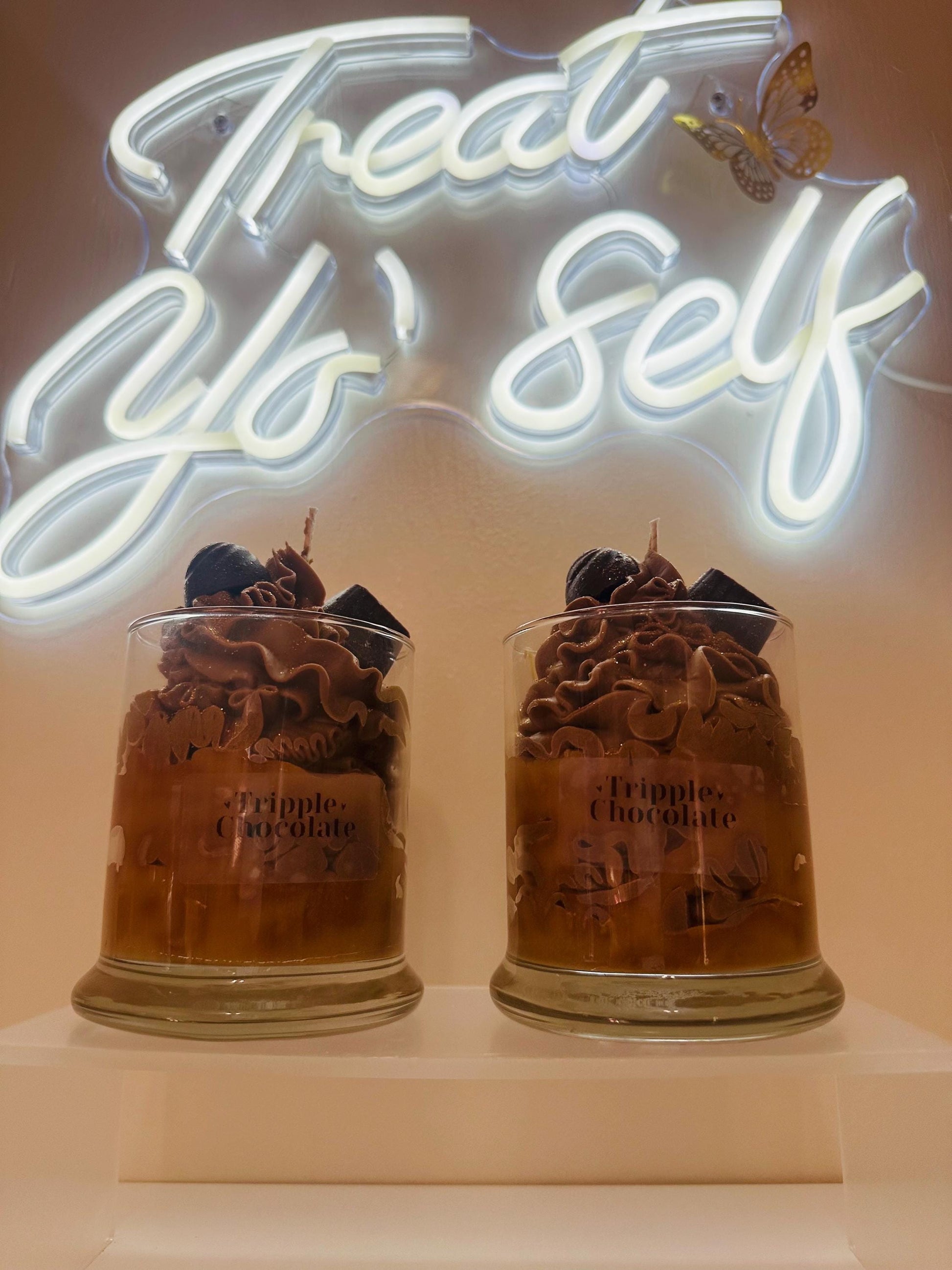 Introducing our triple chocolate candle, a perfect addition to your home decor. This candle is made of a combination of three types of chocolate, which gives it a rich and decadent taste. The triple chocolate candle is perfect for those who love the taste of chocolate and want to enjoy it in a different way.
